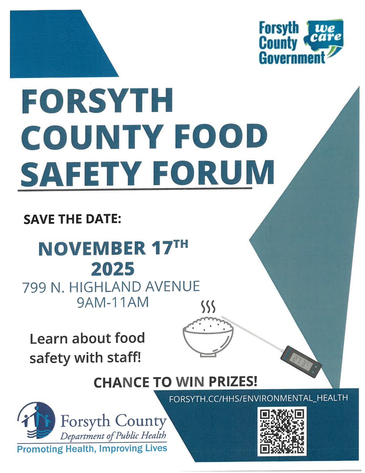 Food, Lodging and Institutions will be holding our annual Food Safety Forum on November 10th, 2025 and November 17th, 2025. The session on November 10th will be held in Spanish and the session on November 17th will be held in English. Both sessions will be held from 9AM - 11AM at the Department of Public Health, located at 799 N. Highland Avenue, Winston-Salem, NC 27101.