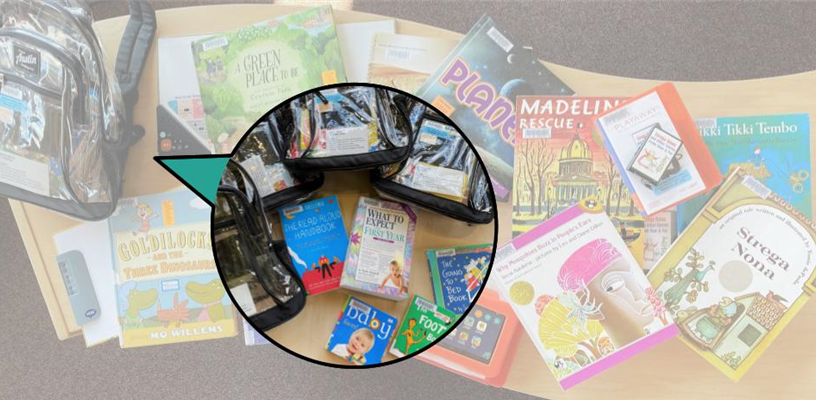 Walkertown Branch Library's Milestone Kits are great resources for parents of babies through kindergarteners. Each kit includes two books for adults to learn about activites or what to expect and three books to read together.