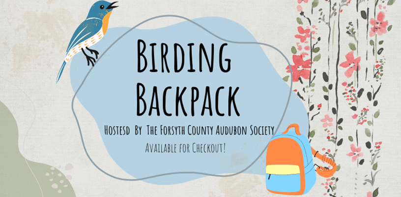 Did you know you can check out a backpack with the supplies to watch birds from Central Library? The Forsyth County Audubon Society has put together a kit featuring: binoculars, a tri-fold camping stool, books, and spotting guides, all designed to help you get to know your feathered neighbors better. The backpack checks out for three weeks and is available at the information desk on the third floor of Central Branch, so call ahead at 336-703-3020 to see if it's here.
