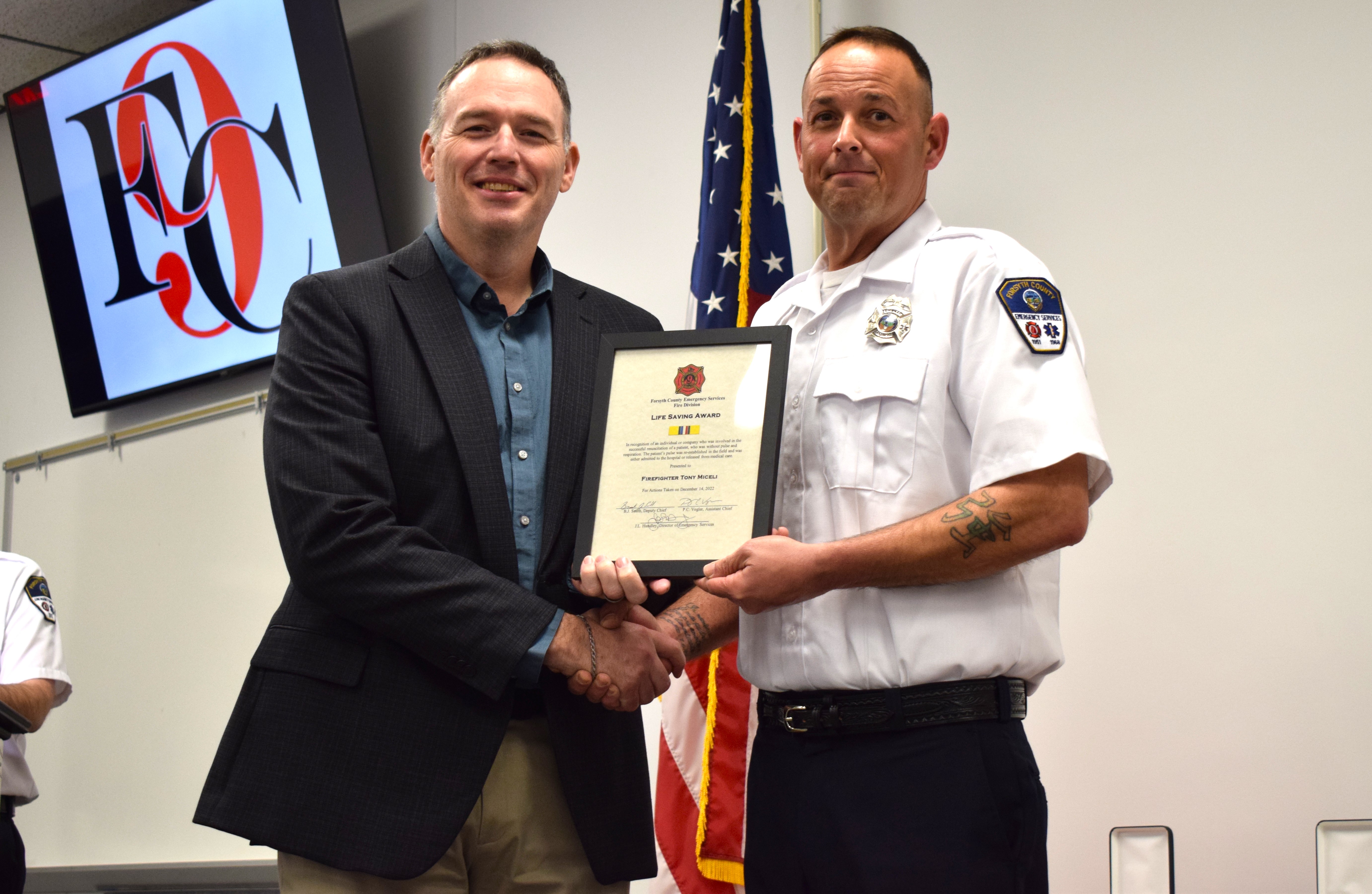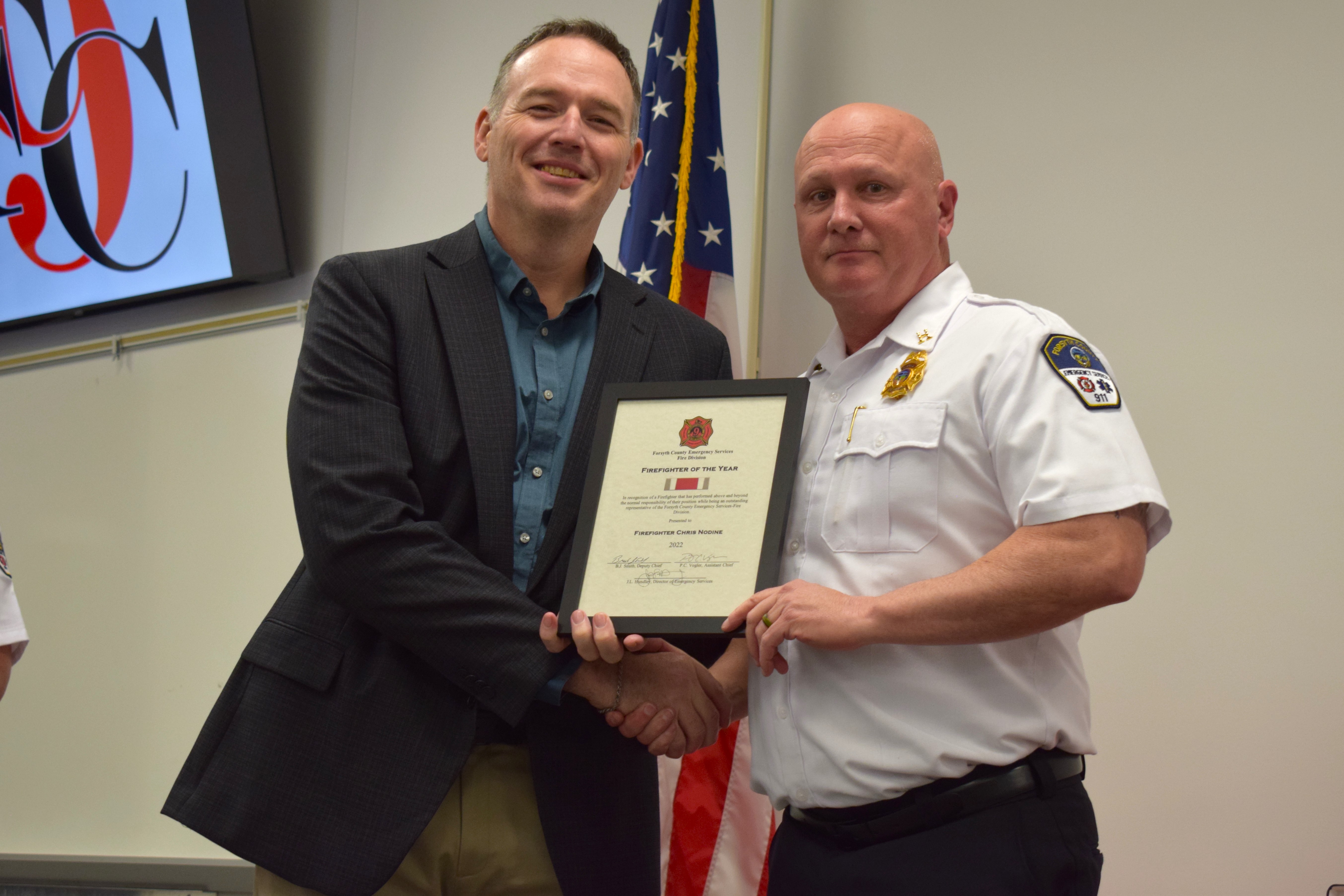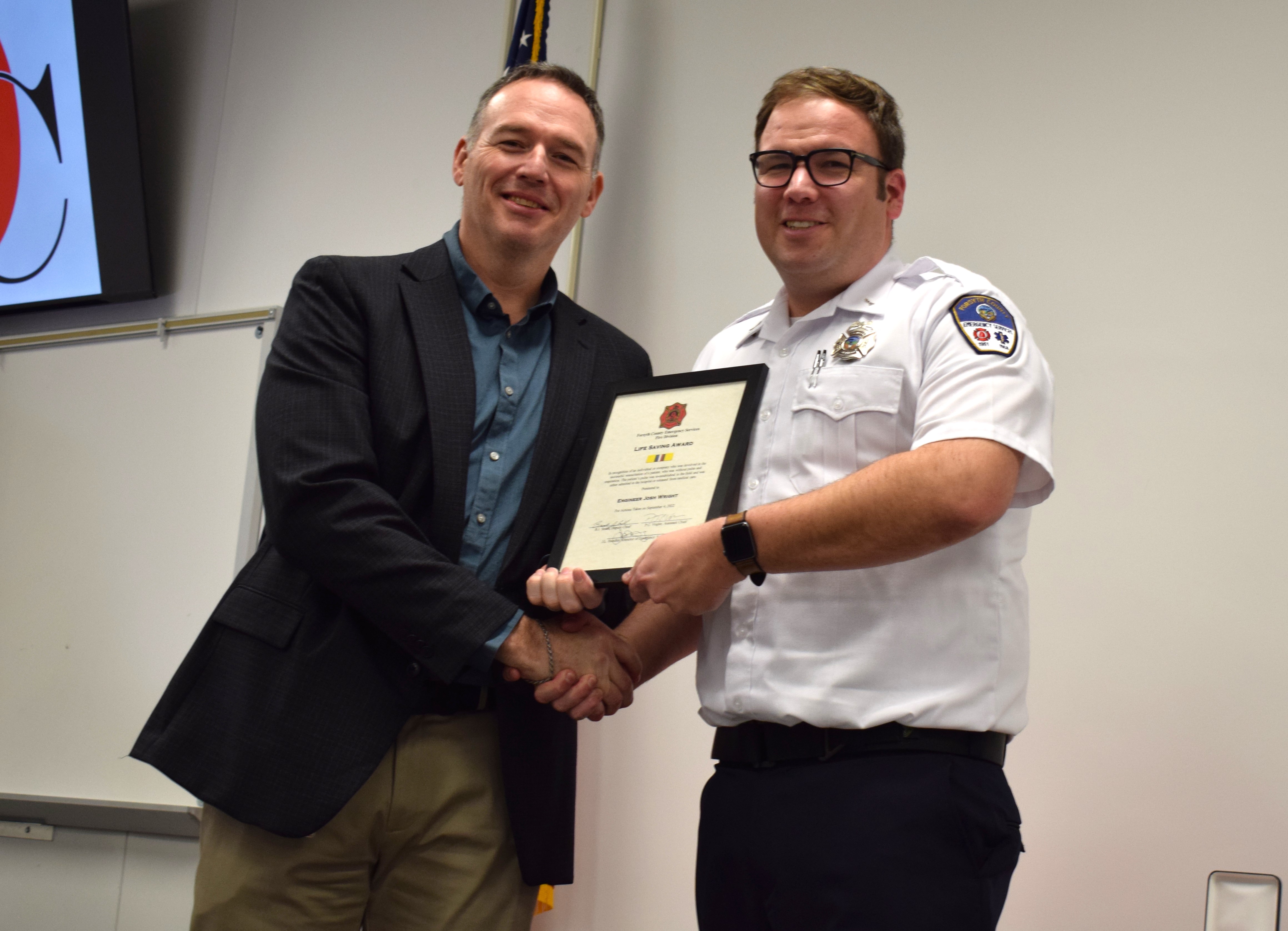 Engineer Mike Blakley receives a Fire Officer of the Year