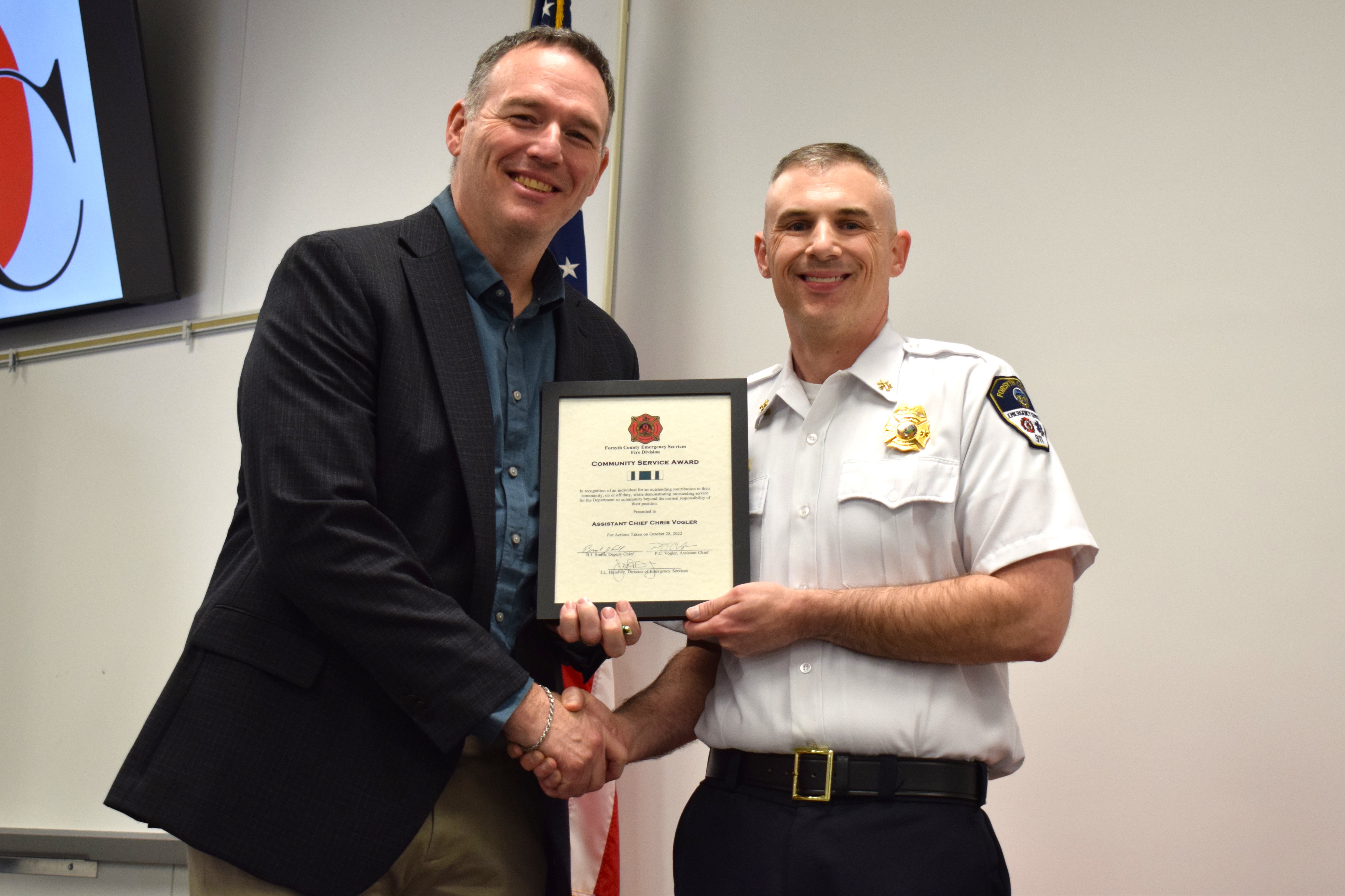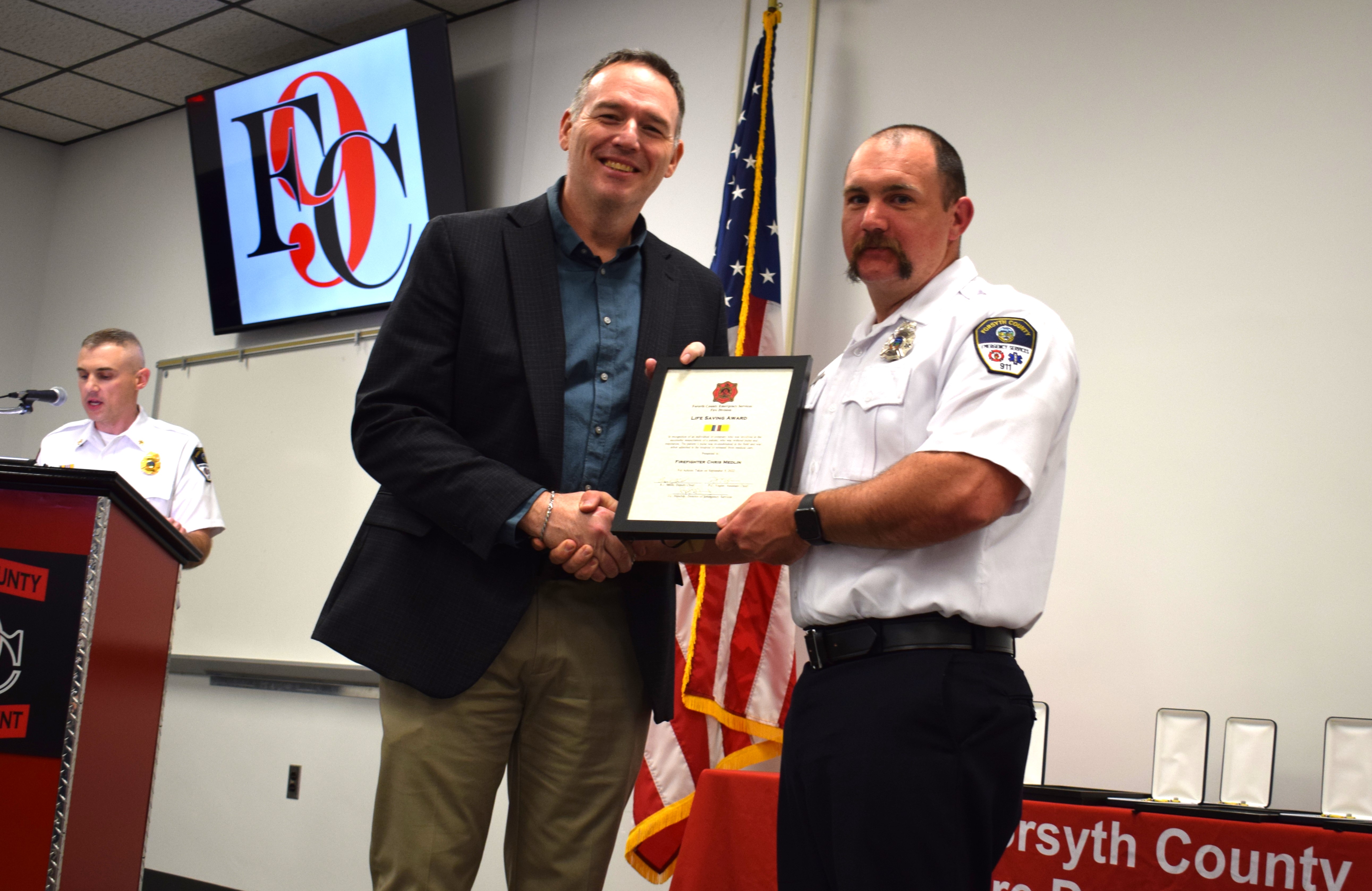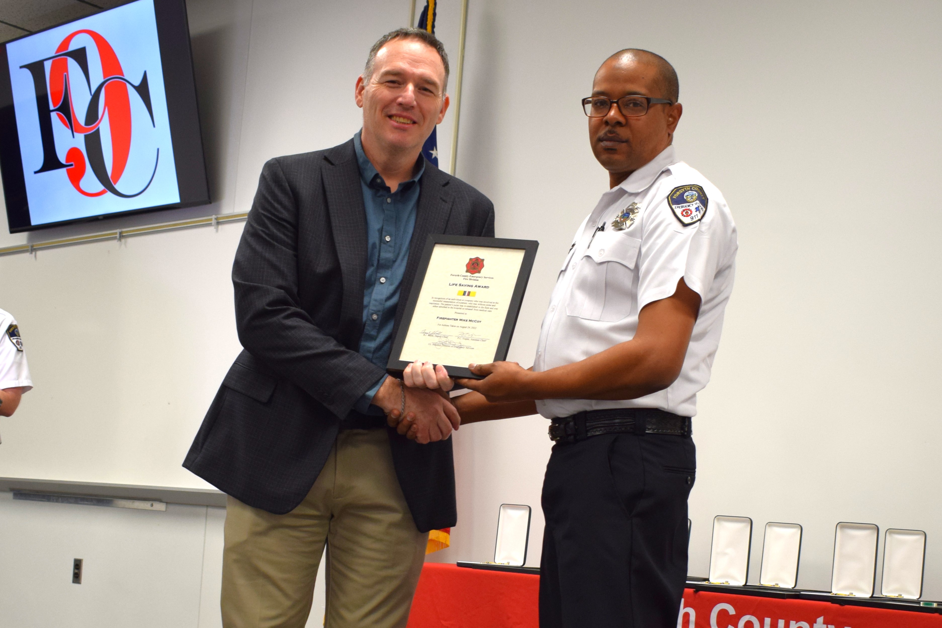 Engineer Mike Blakley receives a Fire Officer of the Year